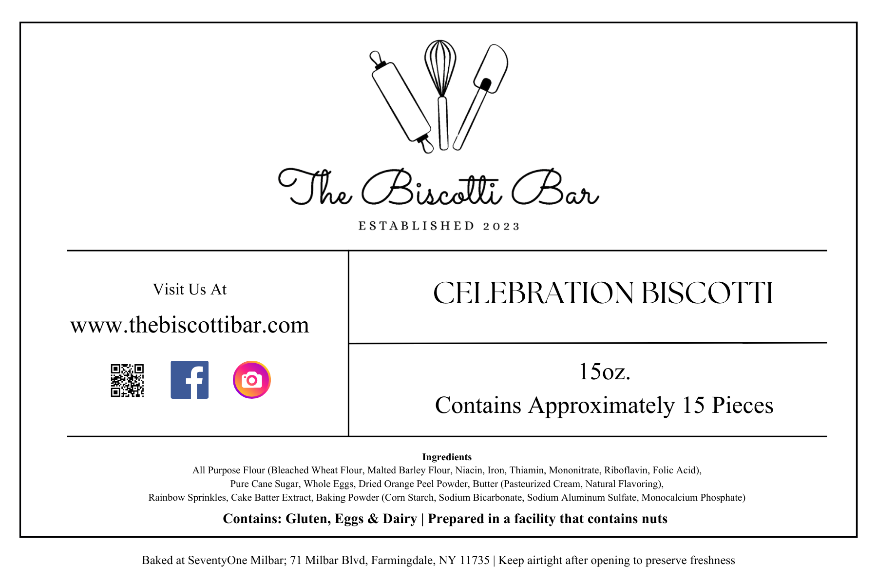 Fun, festive, and full of joy, our Celebration Biscotti is inspired by classic cake batter and finished with colorful sprinkles, making it perfect for birthdays, milestones, or any day worth celebrating.